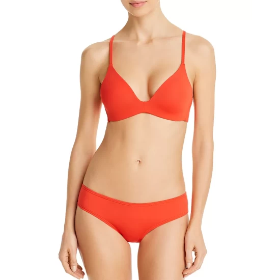 Sunny skies, an idyllic beachfront and this alluring bikini from VINCE CAMUTO define the ultimate escape. Styled in a sophisticated solid, this modern pairing features crossover front panels for a wow-worthy wrap effect and lace-up back ties to keep things in place.