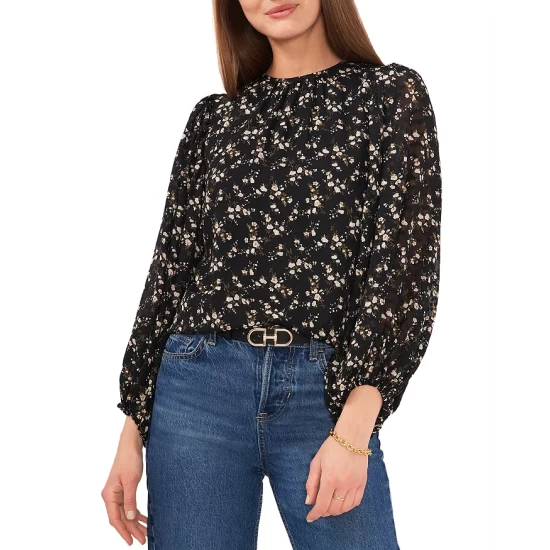 Wholesale πŸ˜‰ VINCE CAMUTO Floral Print Blouson Top Rich Black πŸ’―