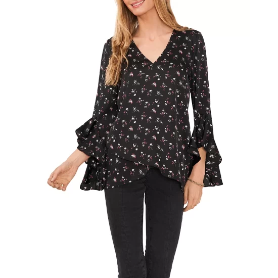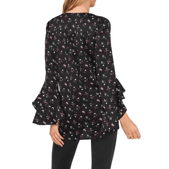 Best reviews of 🎁 VINCE CAMUTO Floral Print Flutter Sleeve Blouse Rich Black πŸ˜€