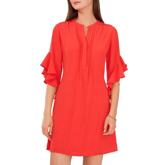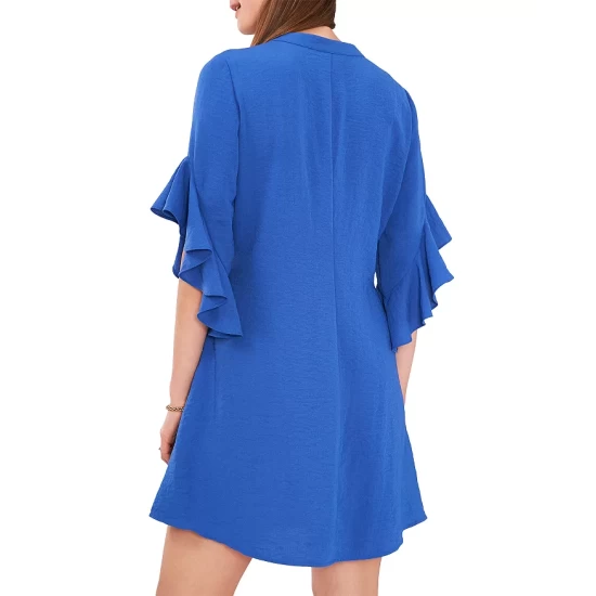 - Elbow-length flutter sleeves
