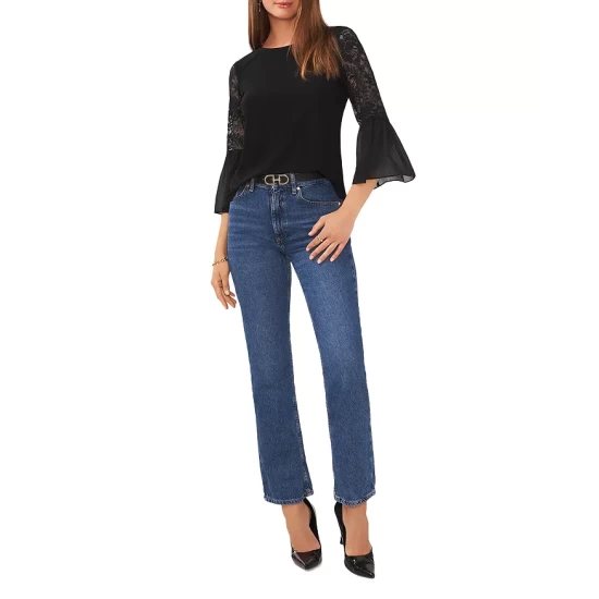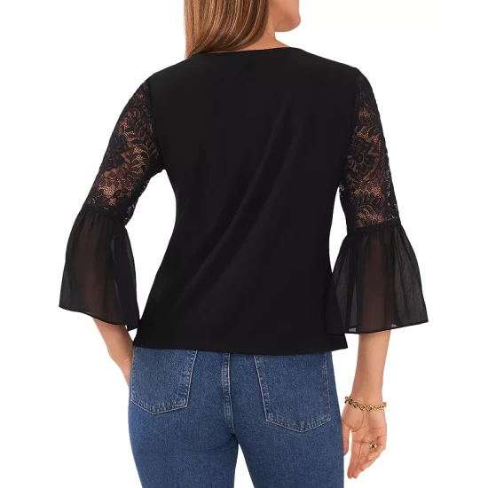 Budget 😍 VINCE CAMUTO Lace Bell Sleeve Top Rich Black πŸ˜€