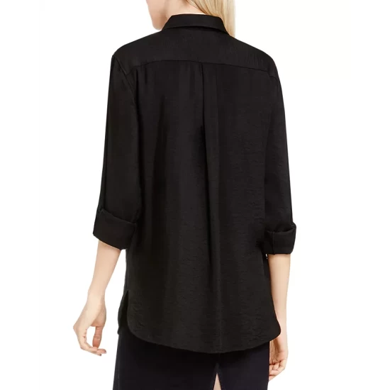 - Spread collar, long sleeves, button cuffs and roll tabs