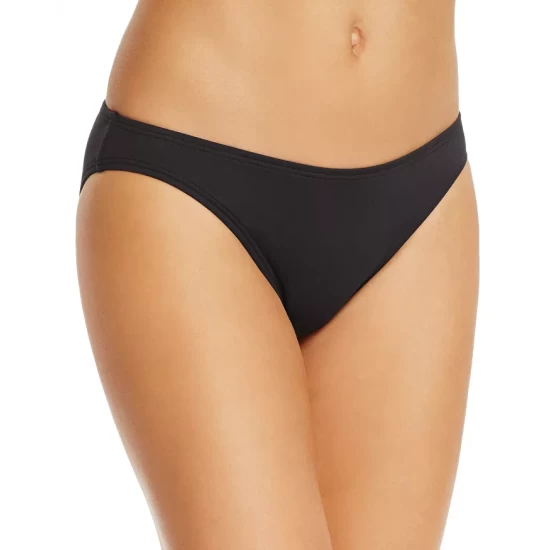 VINCE CAMUTO upgrades the classic black bikini with geometric racerback straps for extra interest.