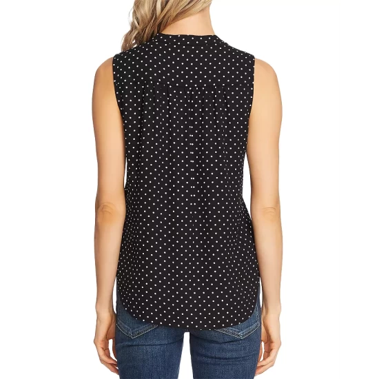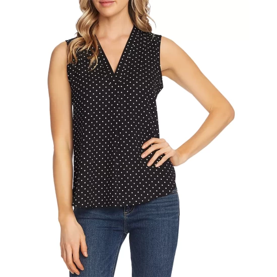 Flash Sale 🎉 VINCE CAMUTO Poetic Dots V Neck Sleeveless Top Rich Black 😉