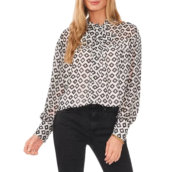 - Long blouson sleeves with buttoned cuffs