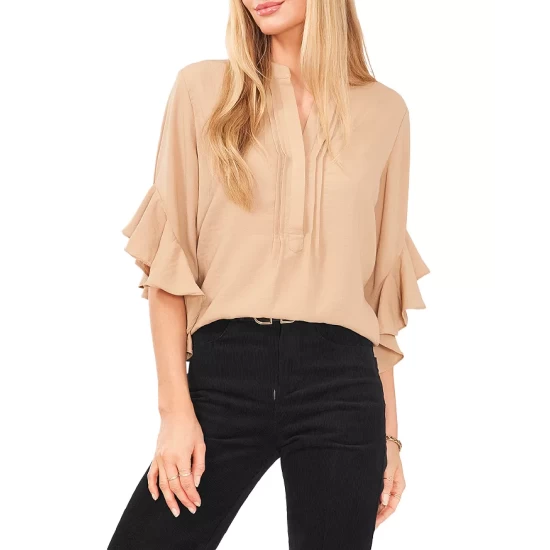 - Model measurements: 5’10” height, 33.5″ bust, 23.5″ waist, 34.5″ hips, wearing a size small