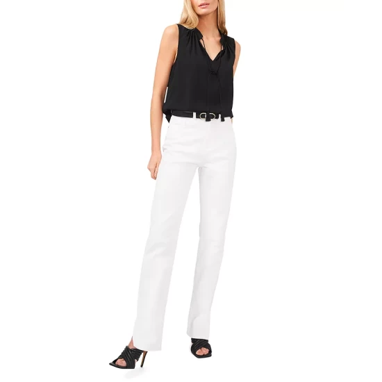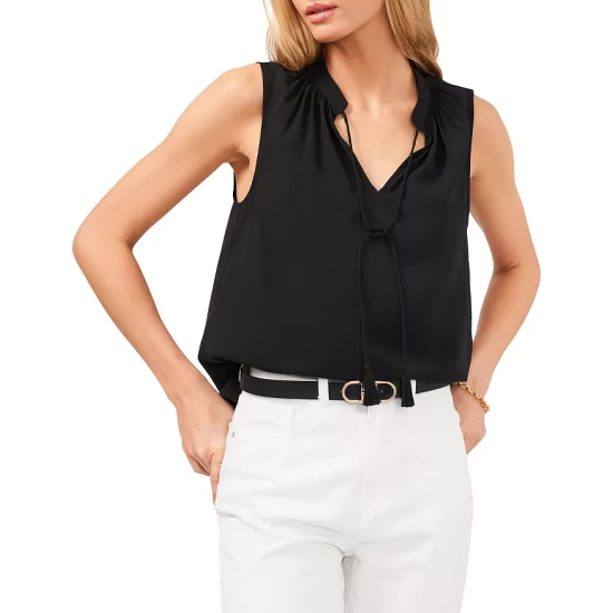 Discount ๐Ÿงจ VINCE CAMUTO Split Neck Tassel Top Rich Black ๐Ÿ›’