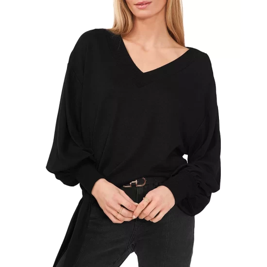 - Drop shoulders, long sleeves, wide ribbed cuffs